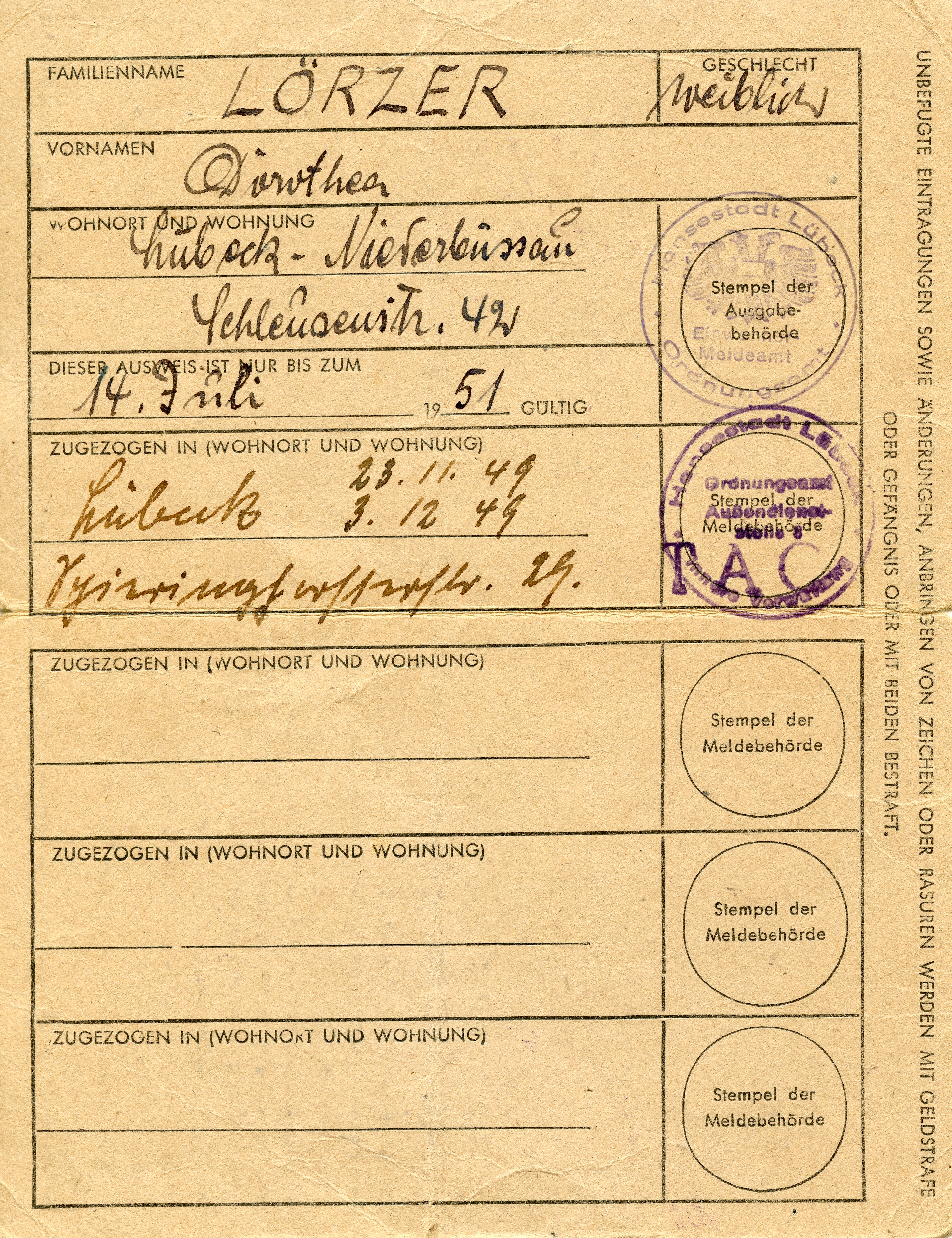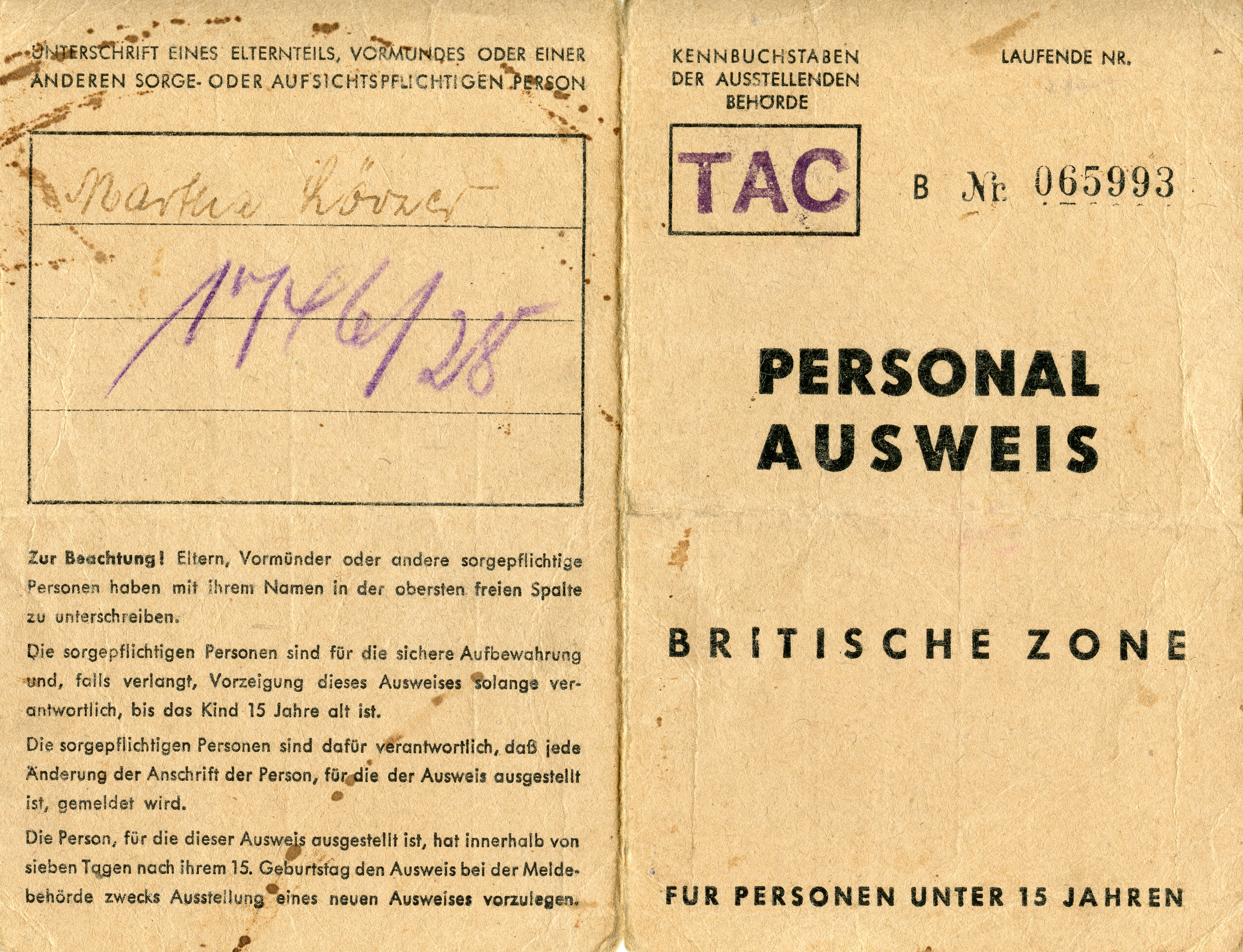 - Personalausweis von Dorothea Killert, Britische Zone - {Quelle: Archiv Killert, privat} Seite 1 Seite 2