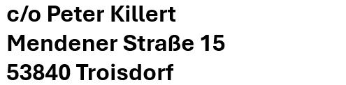 Der Nutzung von im Rahmen der Impressumspflicht veröffentlichten Kontaktdaten durch Dritte zur Übersendung von nicht ausdrücklich angeforderter Werbung und Informationsmaterialien wird hiermit ausdrücklich widersprochen. Die Betreiber der Seiten behalten sich ausdrücklich rechtliche Schritte im Falle der unverlangten Zusendung von Werbeinformationen, etwa durch Spam-Mails, vor.