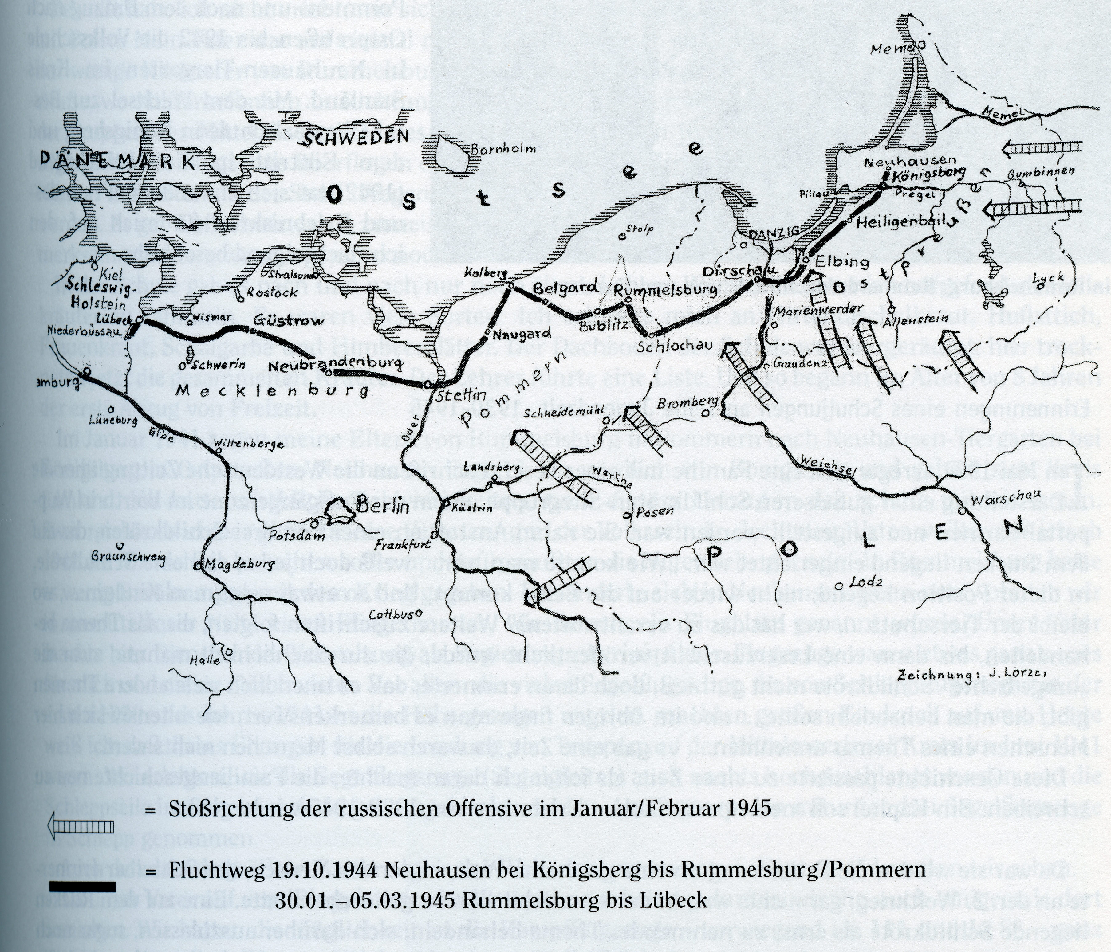 Ab Januar 1945 beginnt ein Wettlauf mit der Zeit und die eigentliche Flucht beginnt. Die Details dazu beschreibt nachfolgend Ulrich Lörzer in seinen Lebenserinnungen.