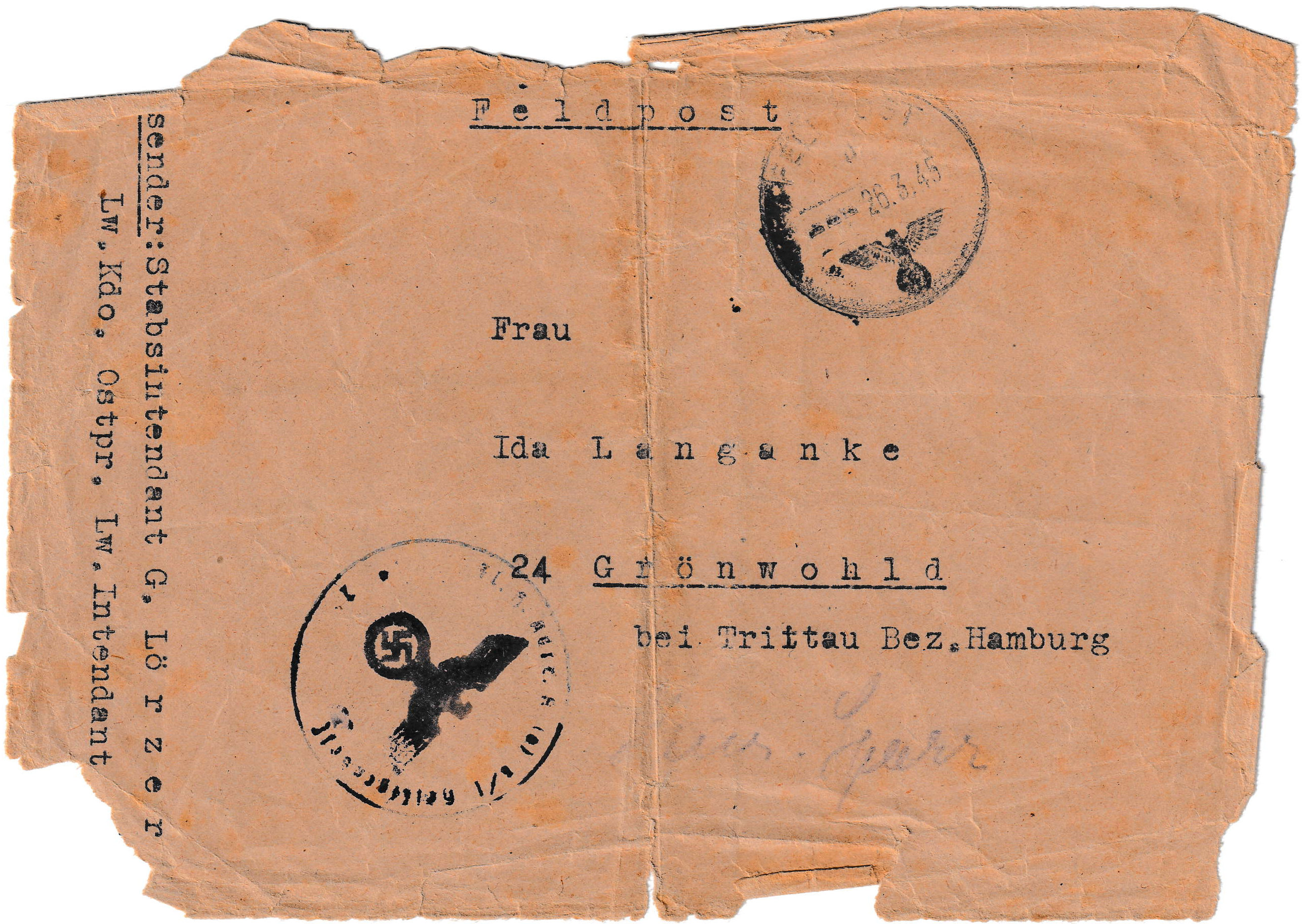 Die Familie Lörzer ist nur eine von Zehntausenden anderen Familien mit demselben Schicksal. Auch die Familie meines Vater ist aus Ostpreussen geflohen. Allerdings auf dem Fussweg über die Kuhrische Nehrung - mein Vater stammte aus Memel (heutiges "Klaipeda"). Neben den Briefen meines Großvaters väterlicherseits und einigen Fotos aus dem zerstörten Memel gibt es jedoch keine detaillierten Aufzeichnungen der Flucht der Familie meines Vaters. Jedenfalls strandet mein Vater auch in Lübeck und lernt dort Weihnachten 1956 meine Mutter kennen.