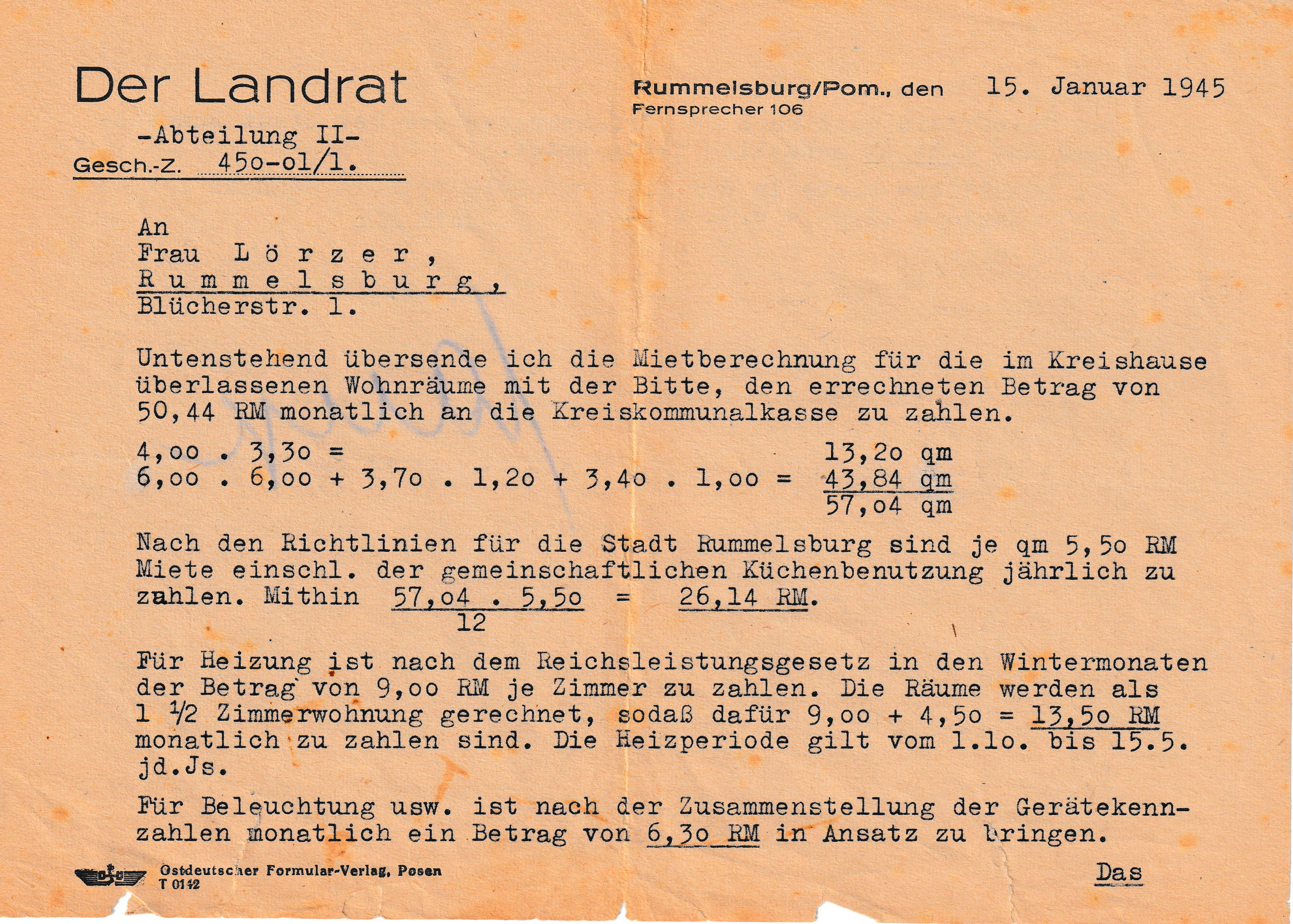 Es gibt also eine klare Abgrenzung der Zeit in Rummelsburg für die Familie Lörzer von Oktober 1944 bis Januar 1945 und den Ereignissen ab Januar 1945, als die Russen begannen, Ostpreussen einzunehmen. In Rummelsburg war es zum Beispiel möglich, dass die Lörzerkinder ganz normal in die Schule gehen konnten - das wäre in einer chaotischen Fluchtsituation nicht möglich gewesen. Den Zeitpunkt des Beginns der Flucht sieht mein Onkel also im Januar 1945 und nicht bei der selbst gewählten Evakuierung nach Rummelsburg. Hierin unterscheidet sich das Schicksal der Familie Lörzer von einer pauschalen Einordnung als Fluchtgeschehen.