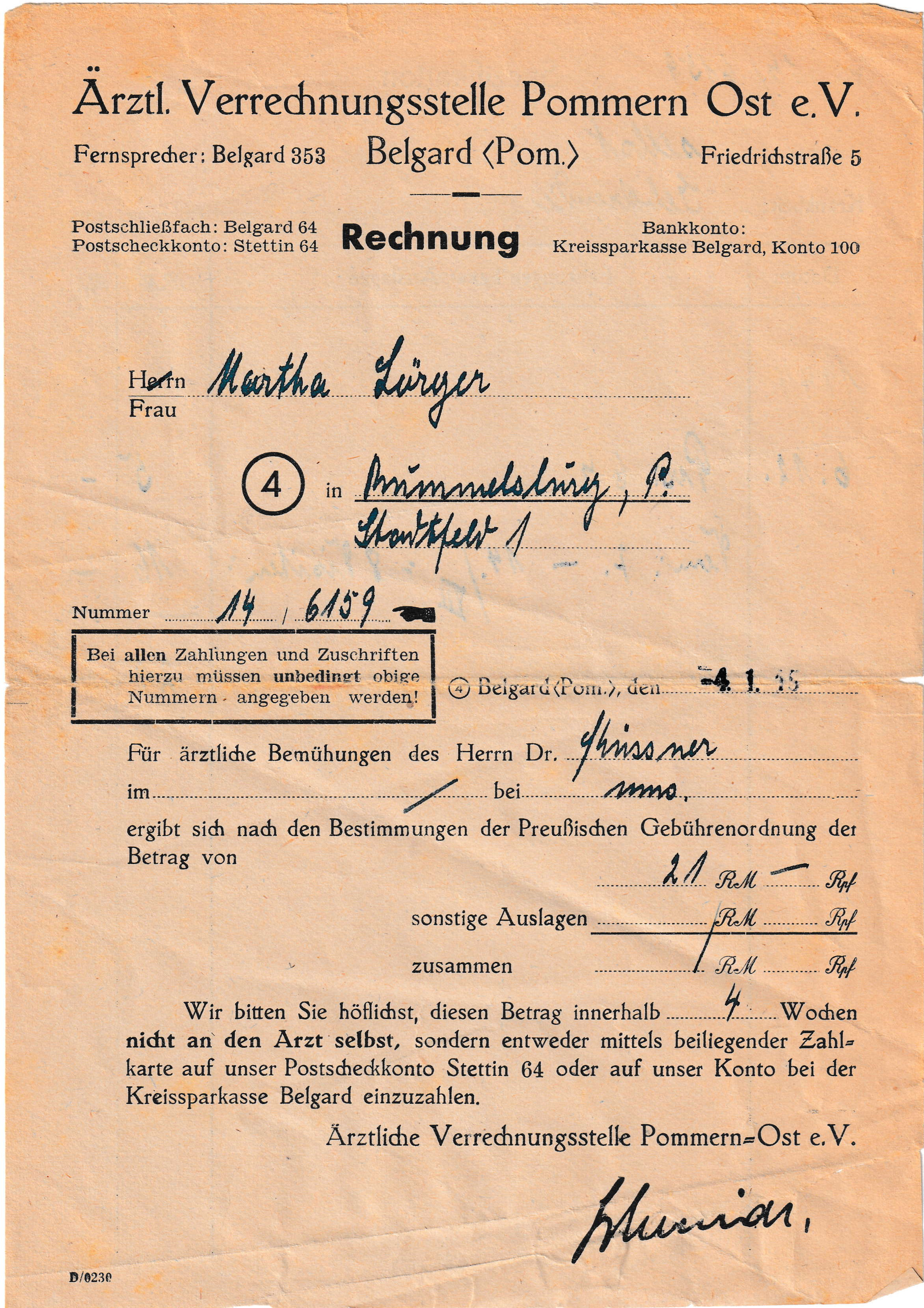 ![]() Rechnung Arztkosten Niederkunft Sabine Lörzer |