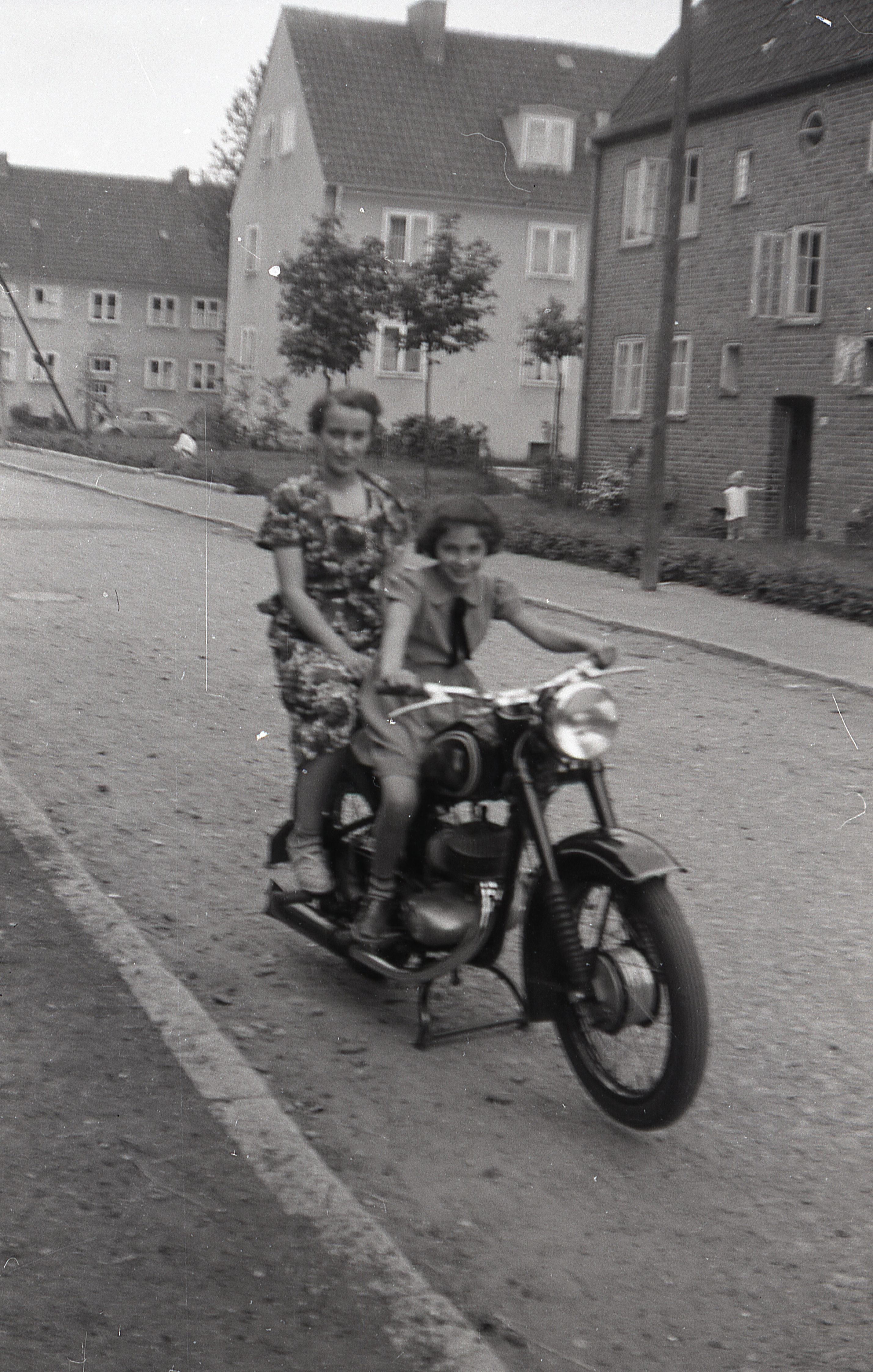 ![]() Auf dem Motorrad des großen Bruders: Edda und Dorothea Lörzer |