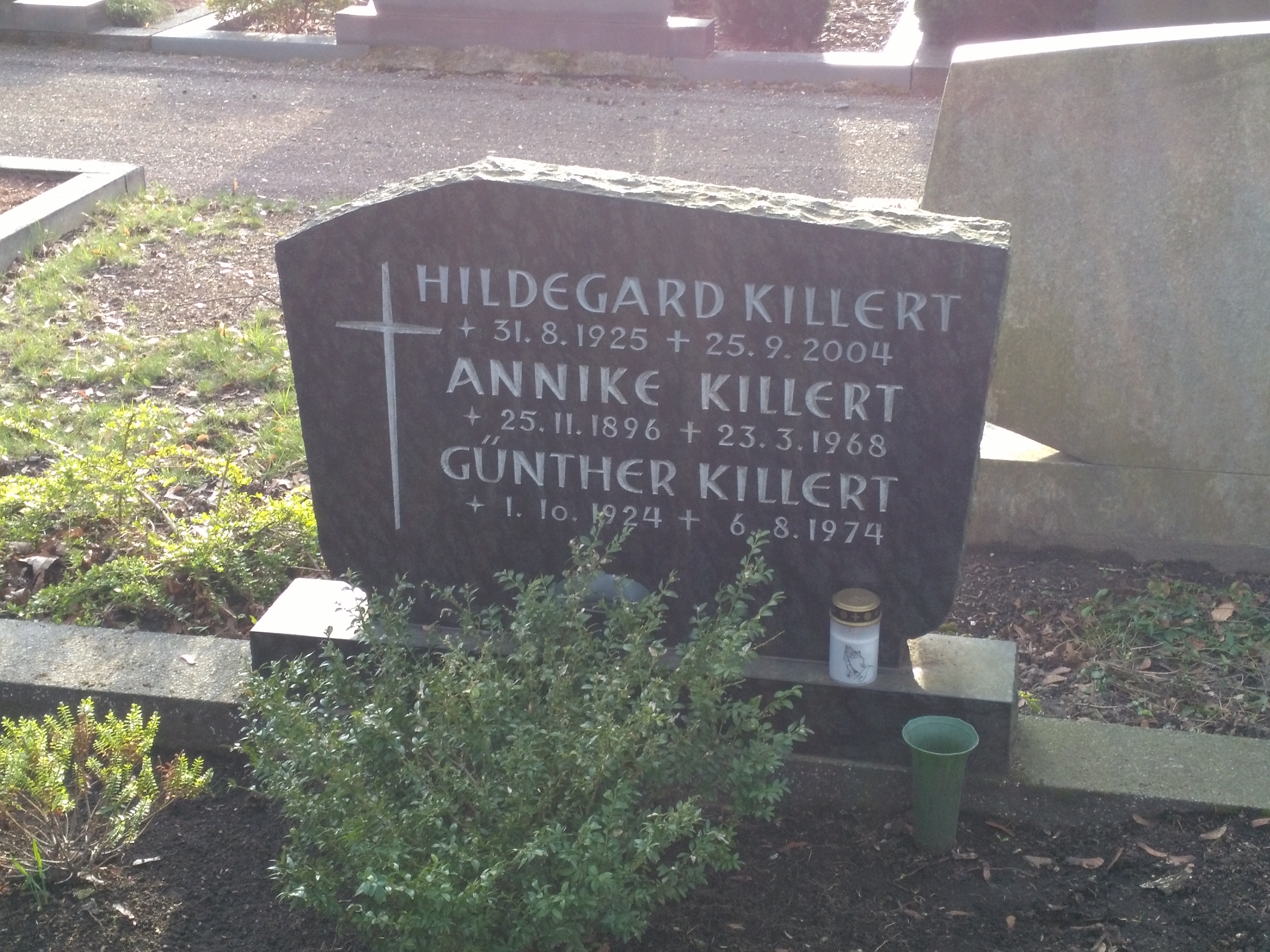 Das Grab von Annike Killert - in vielen Dokumenten auch immer wieder als "Anna Killert" abgekürzt - existiert noch auf dem Friedhof in Oberlar. In dem Familiengrab wurden später auch Günther und Hildegard Killert beigesetzt (Sohn und Schwiegertochter). Günther und Hildegard Killert lebten in Troisdorf - ihnen gehörten das Hotel Kronprinz, die Gaststätte im alten Troisdorfer Bahnhof und der bekannte Oberlarer Hof.