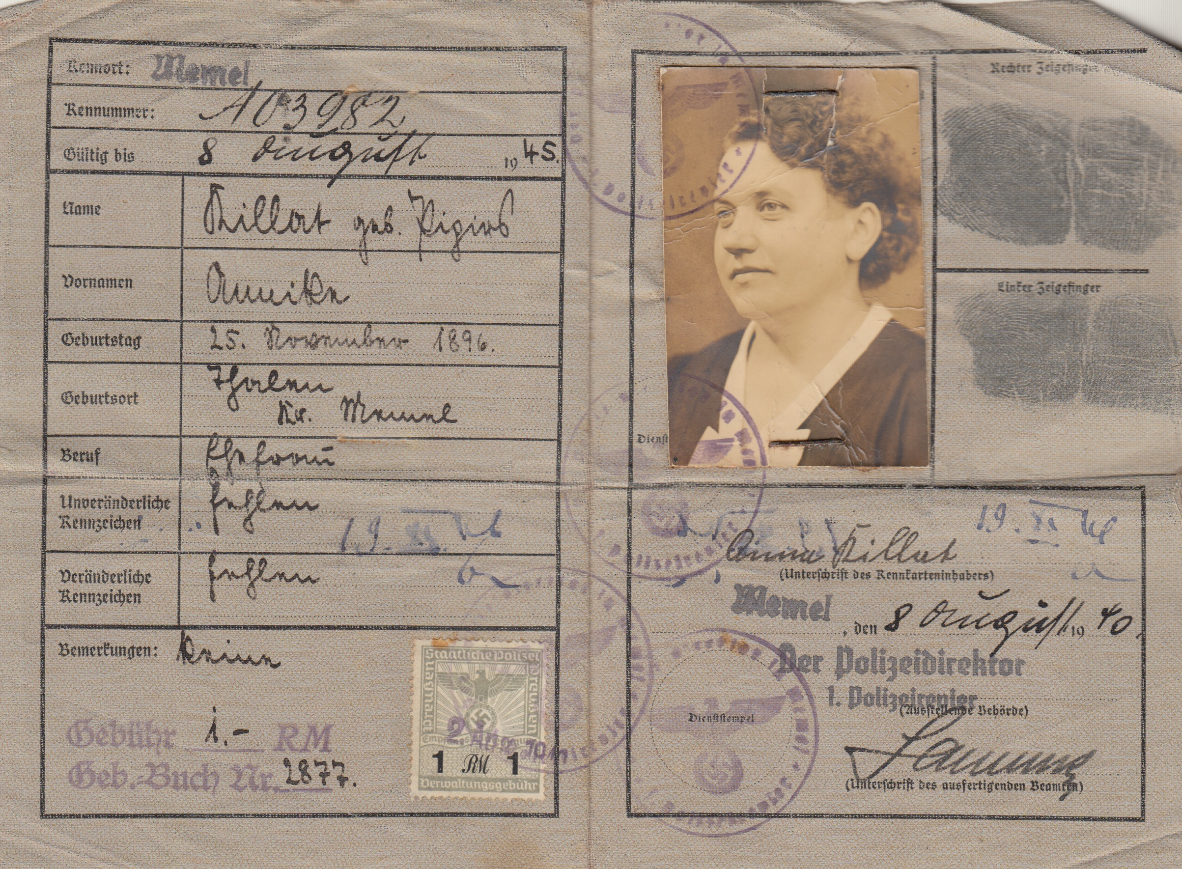 Neben dem sehr schönen Foto aus den 1920er Jahren gibt es einige PassFotos von Annike Killert. Die Fotos stammen vermutlich aus den späten 50er und frühen 60er Jahren: