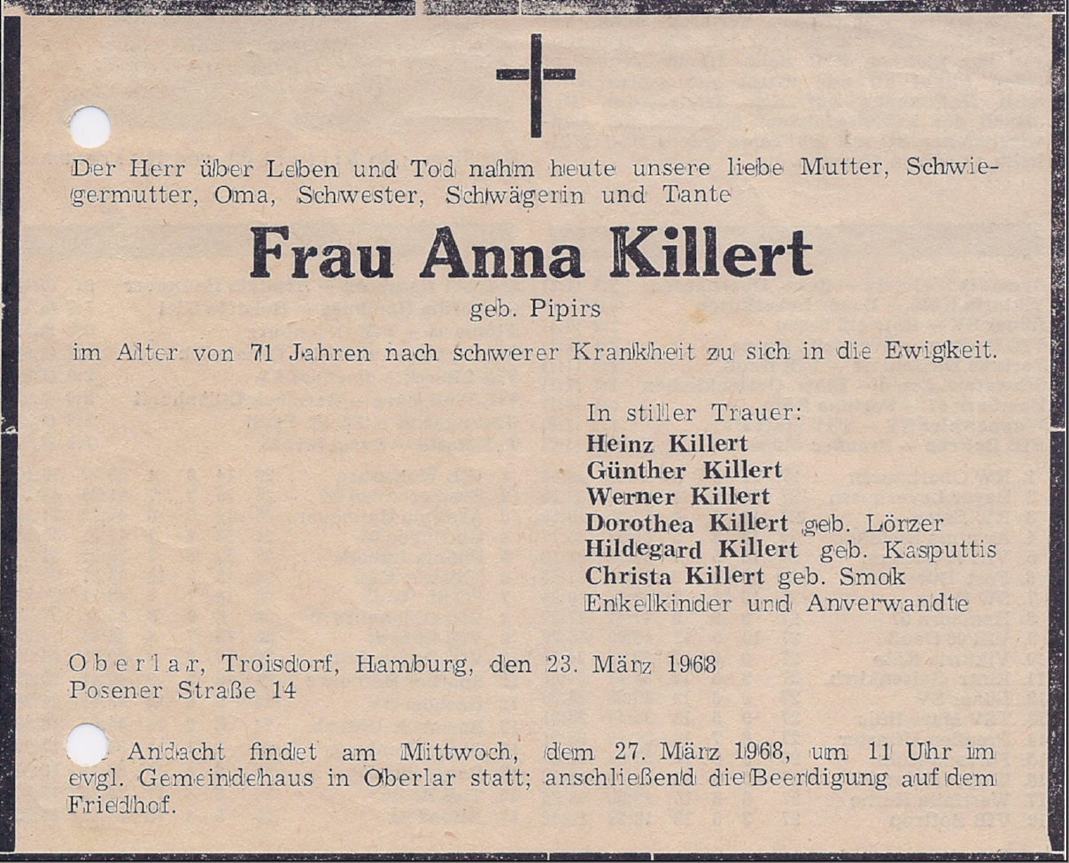 Zu dem einen Halbbruder meines Vaters, Werner Killert, gibt es hier eine umfangreiche Dokumentation eines Briefwechsels.