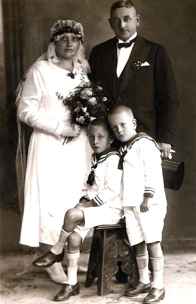 Nachfolgendes Hochzeitsfoto zeigte Annike Killert mit meinem Großvater - die beiden Jungs sind die Kinder aus der ersten Ehe von Franz Killat (siehe oben), Günther Killert und Werner Killert, also die Halbbrüder meines Vaters.
