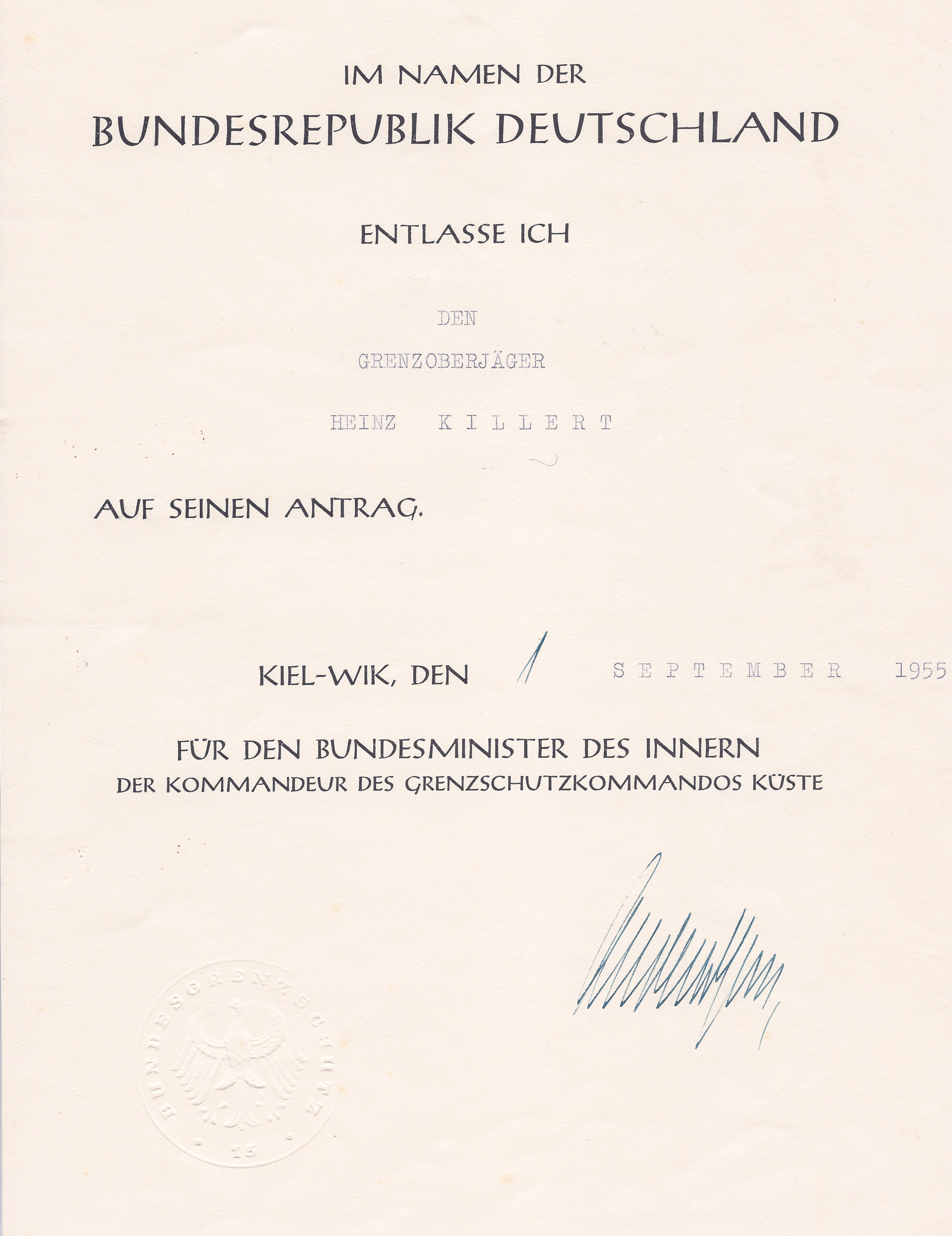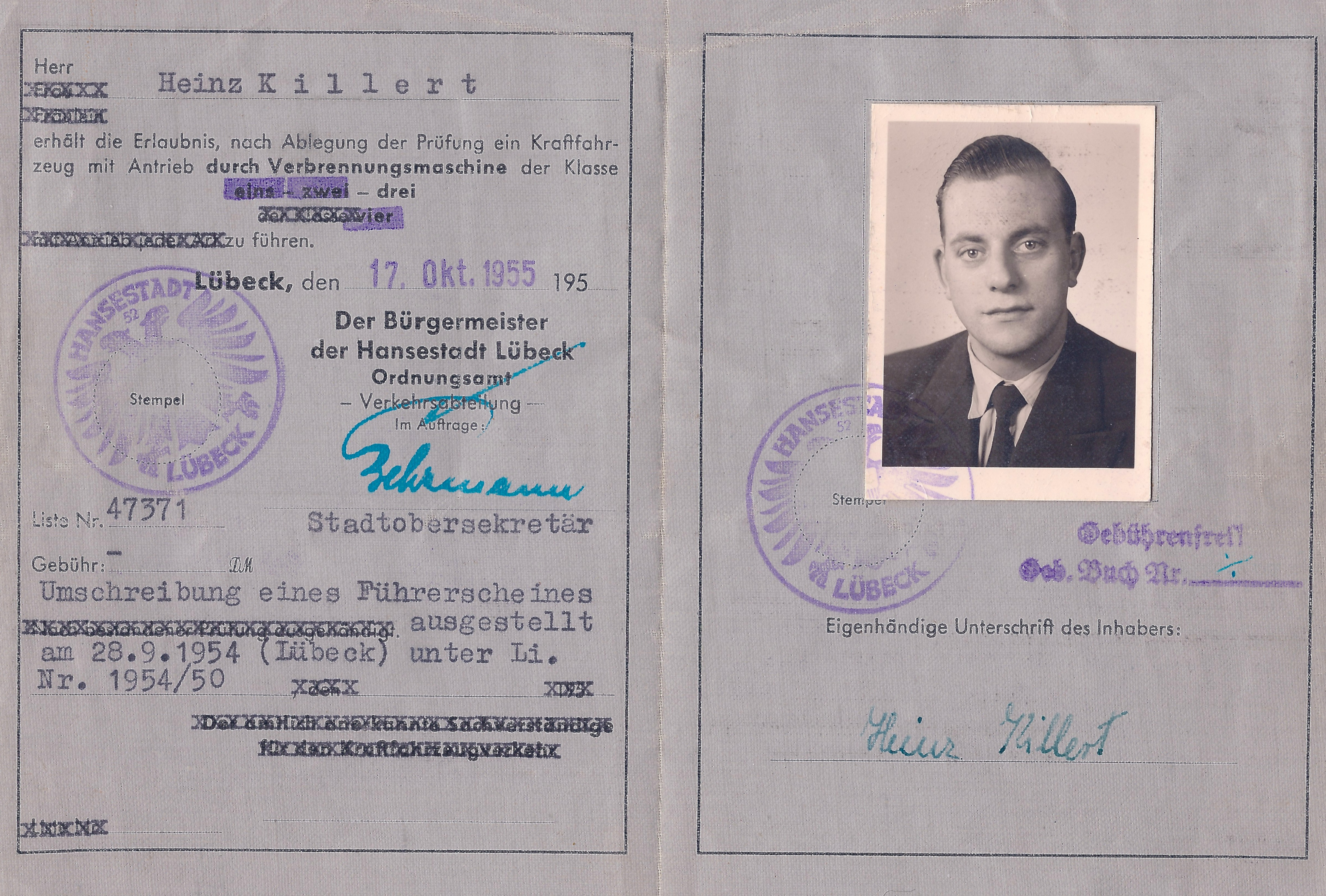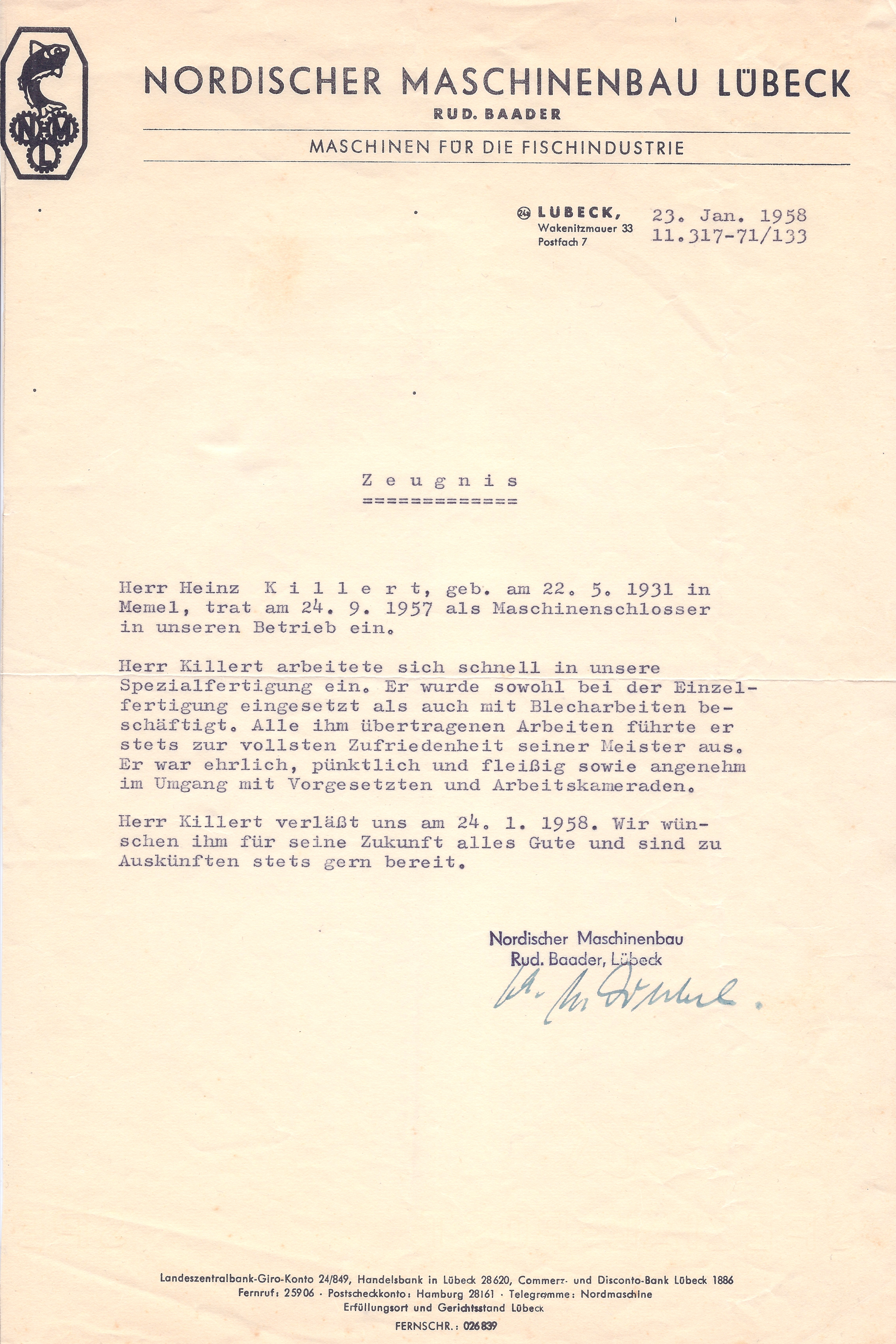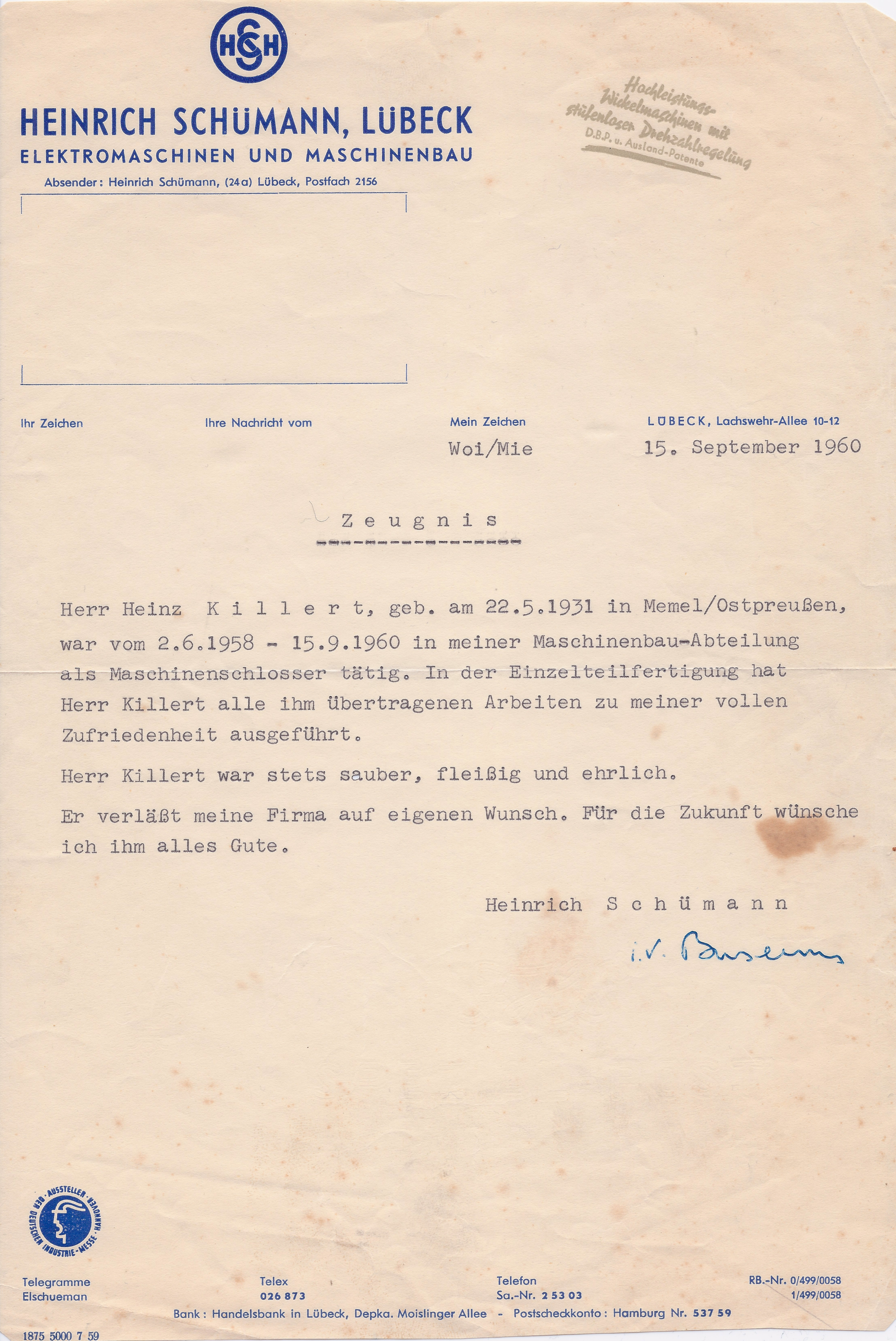 Zeugnisse und FotosBilder, Anekdoten und Dokumente aus dem Leben von Heinz Killert. Wenn Sie die Bilder öffnen, können Sie eine kurze Beschreibung und eine zeitliche Einordnung des Fotos lesen. Diese erscheint unterhalb des Fotos.