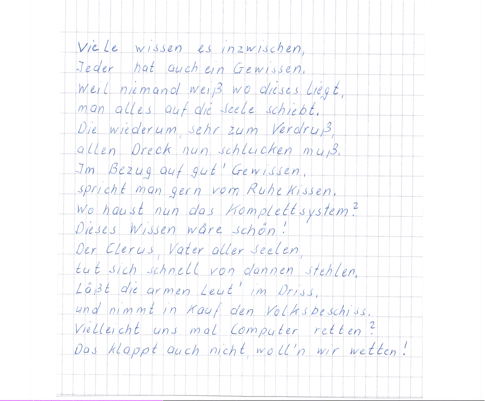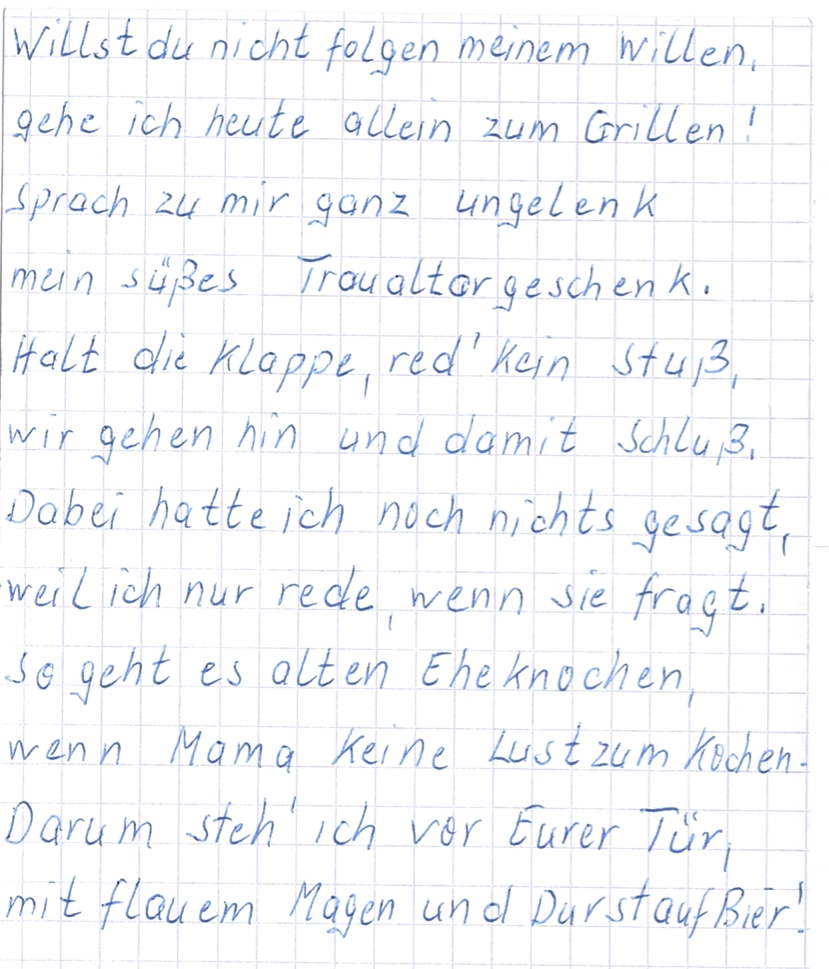 Wenn ein Leben an sein Ende kommt, dann kann das für Betroffene und Angehörige sehr beschwerlich sein. Bei meinem Vater hat sich der Leidensprozess über mehr als ein halbes Jahr hingezogen. Die letzten sechs Wochen, nach einem schweren Schlaganfall Ende Mai 2012, haben eine schwere Entscheidung notwendig gemacht: legt man einem Menschen, der nicht mehr selbständig Nahrung aufnehmen kann und der in seinem ganzen Verhalten keine Kraft, keine Anstrengung zeigt, weiterleben zu wollen, eine Magensonde, so dass eine künstliche Ernährung, vielleicht über Jahre hinweg, ermöglicht wird?