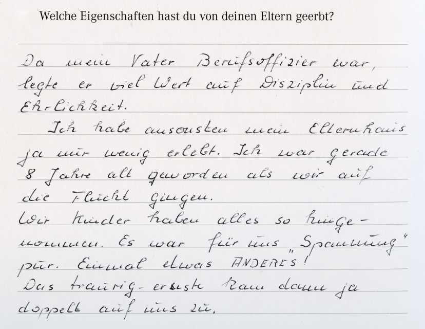 "Was hatte ich in den 5 Jahren nach Kriegsende nicht alles dazugelernt! Ich bin dem Schicksal dankbar, dass ich schon in jungen Jahren kennenlernte, was ein demokratischer Staat ist und was er für meine persönliche Entwicklung bedeutete."