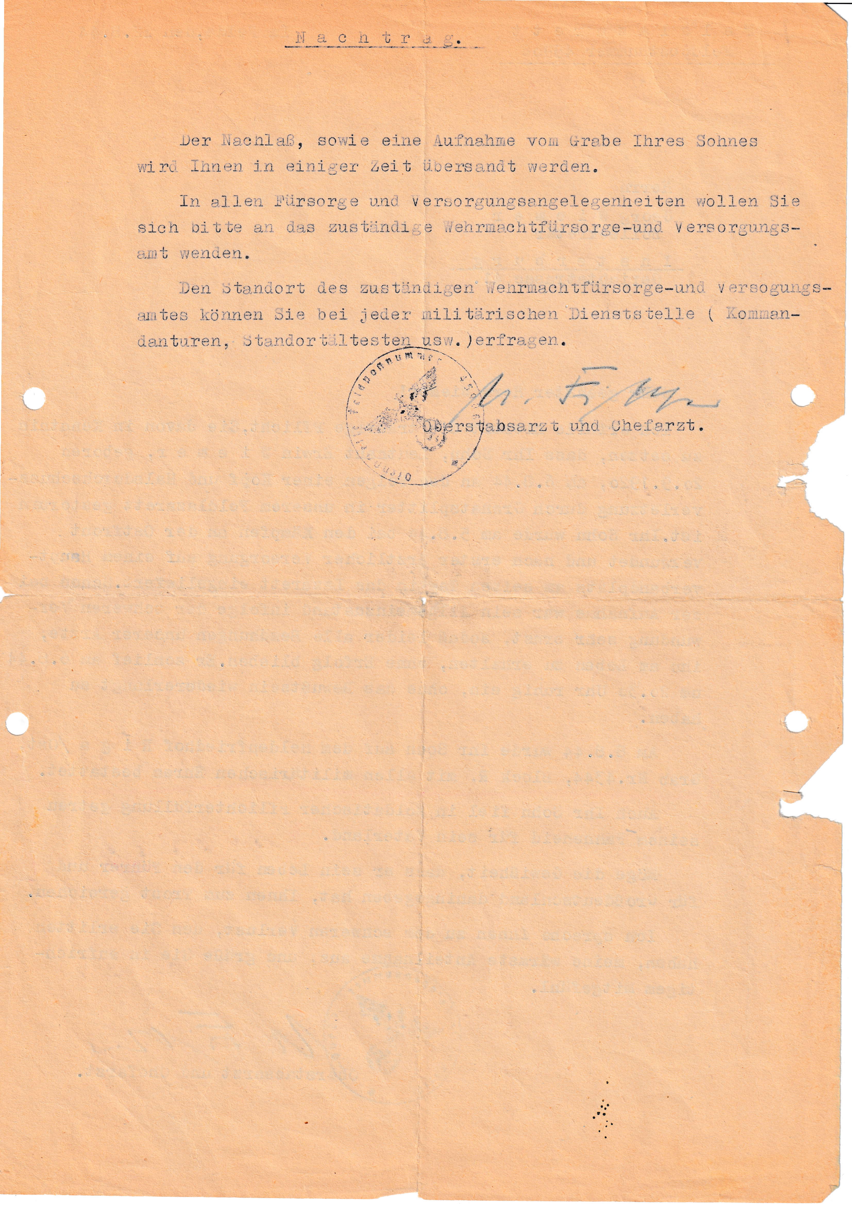 Todesmitteilung Feldlazarett 1/2 |