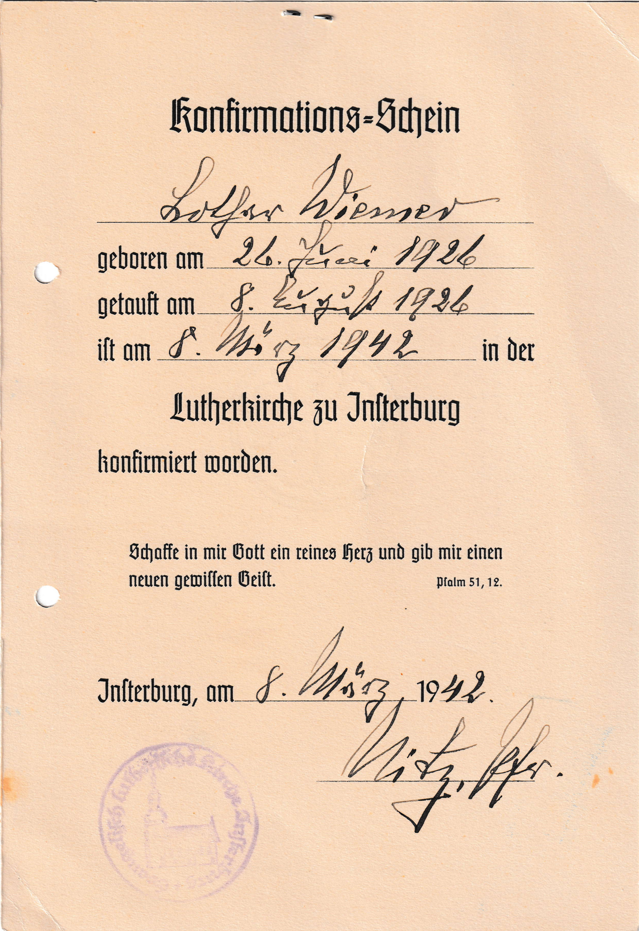 Lothar Wiemer Konfirmation |