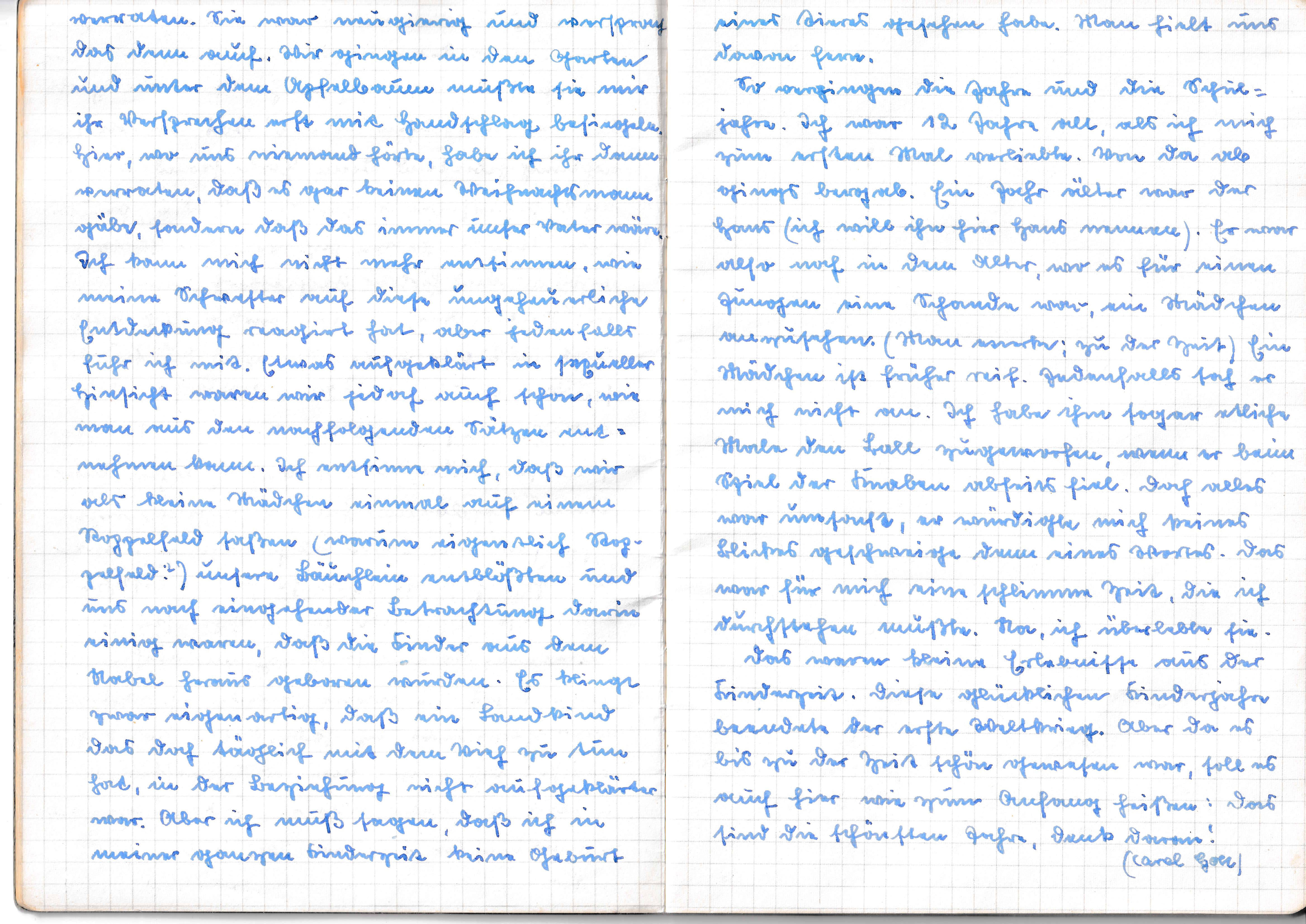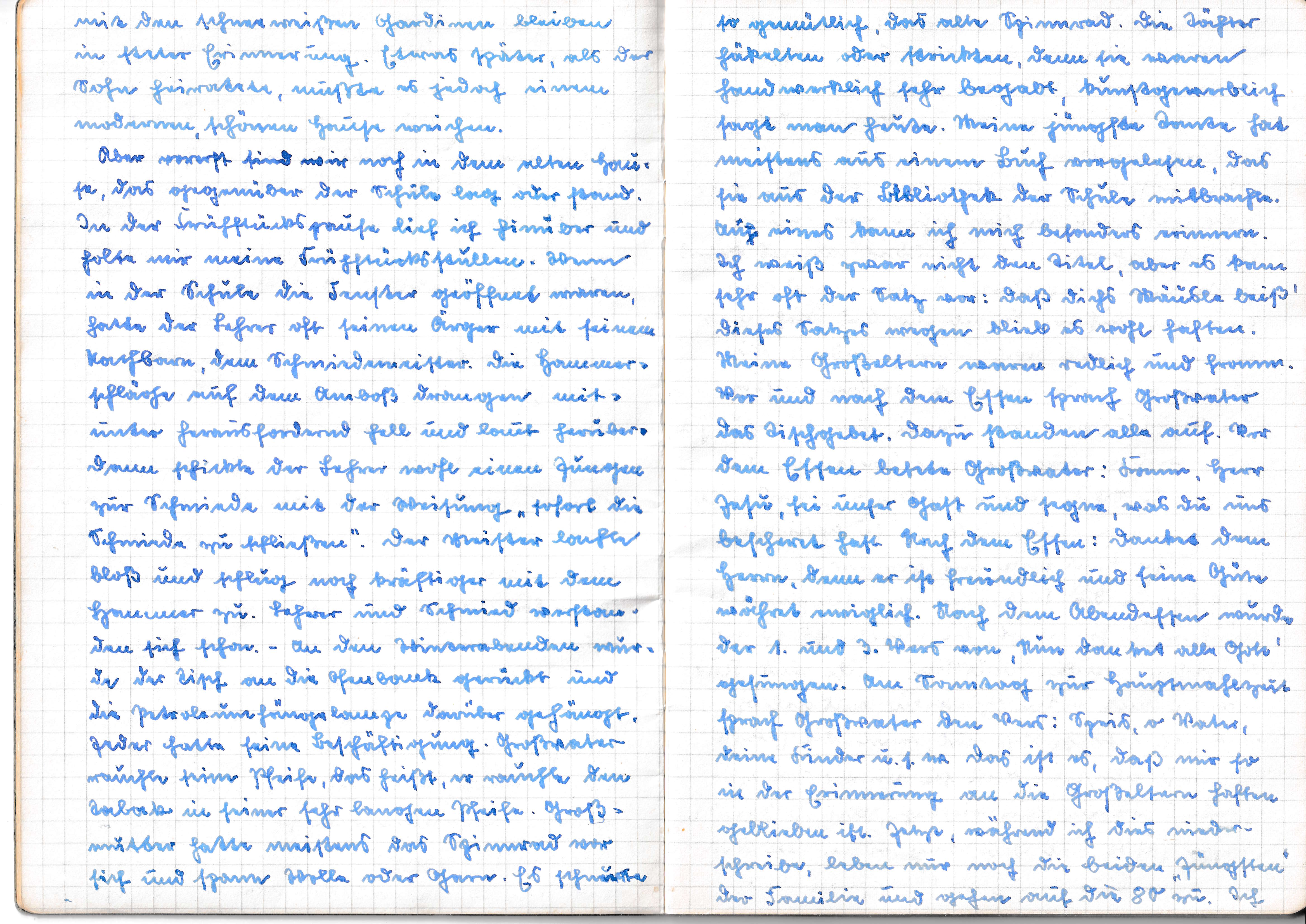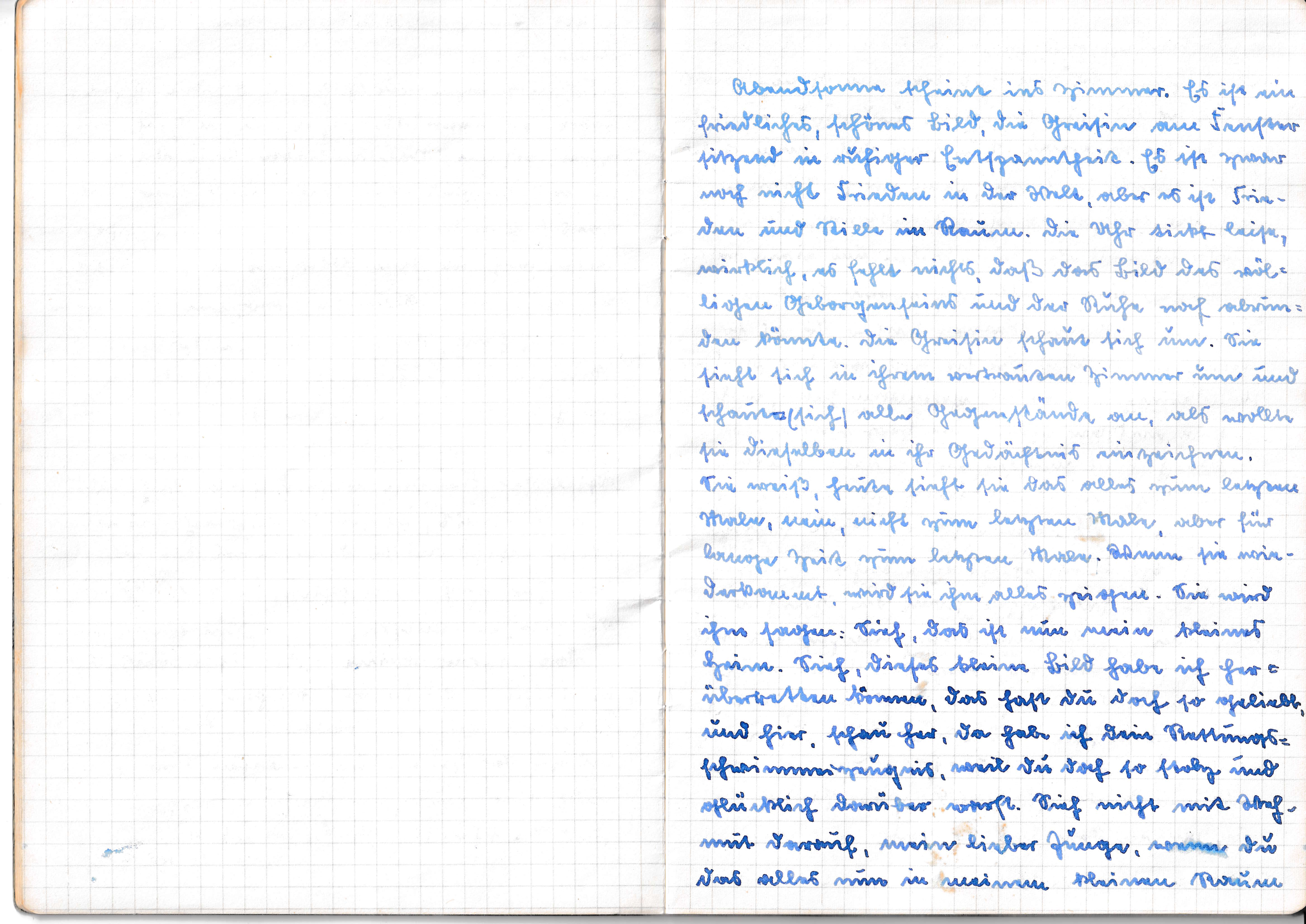 Daher stelle ich hier zunächst nur die Original in Sütterlin zur Verfügung - die Seiten sind als doppelseitige Faksimile zu sehen. Später, in der Bearbeitung mit der Transkription, werden die Texte dann Seite für Seite mit dem ausgelesenen Text genau hier präsentiert werden.