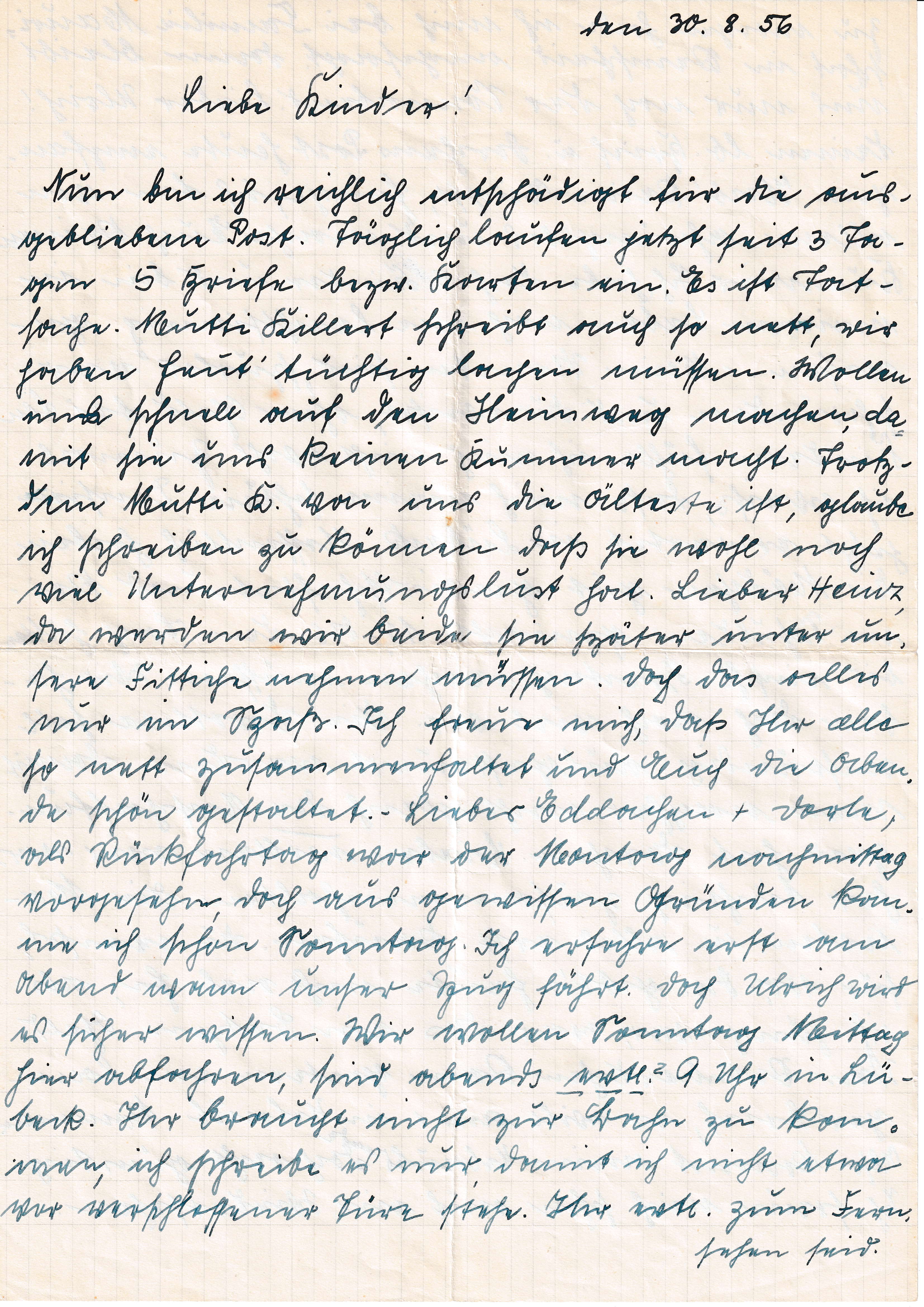 Martha Lörzer ist unterwegs und schreibt ihren Kindern - 30.08.1956