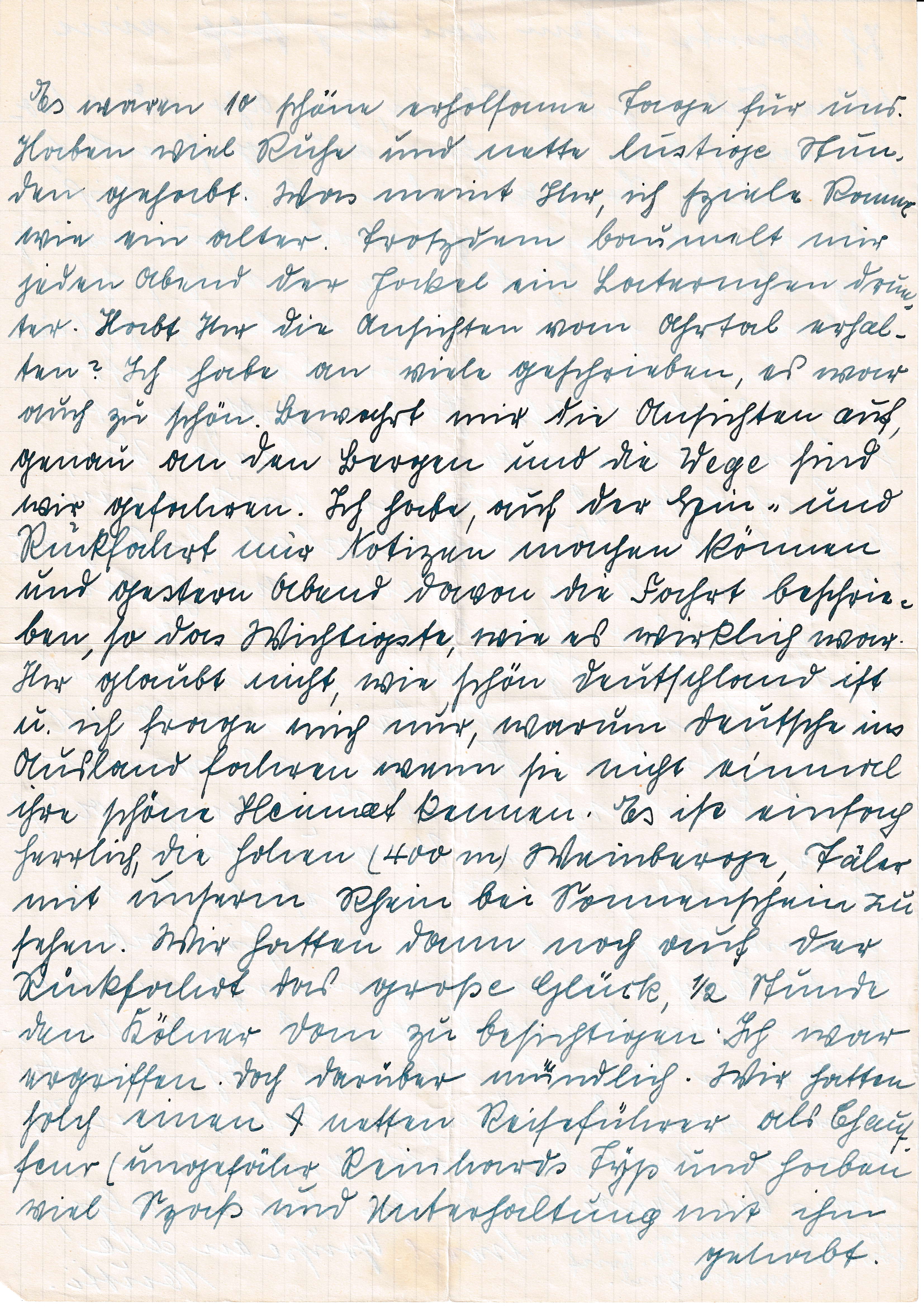 Dieser Brief hat noch eine Fortsetzung, nämlich einen Reisenbereicht einer Rhein-Ahr-Fahrt, den Martha Lörzer zwei Tage vor diesem Brief verfasst hat.